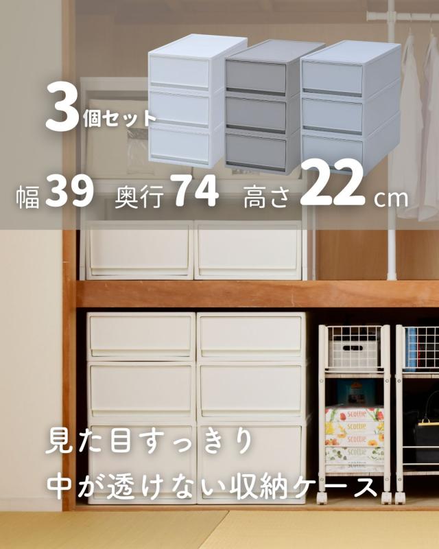 3個組 M 中が透けない 収納ケース 引き出し 奥行き74 収納ボックス 幅39 奥行74 高さ22 cm 衣装ケース 押入れ収納 押入れ クローゼット収納 クローゼット WIC ポリプロピレン プラスチック 日本製 【送料無料】