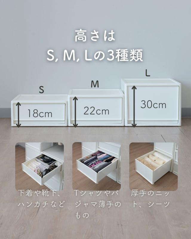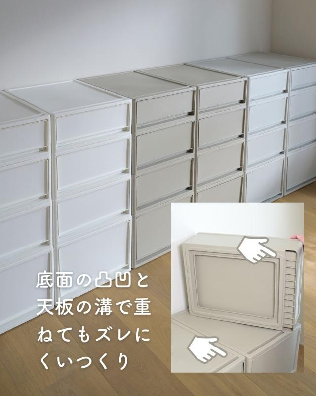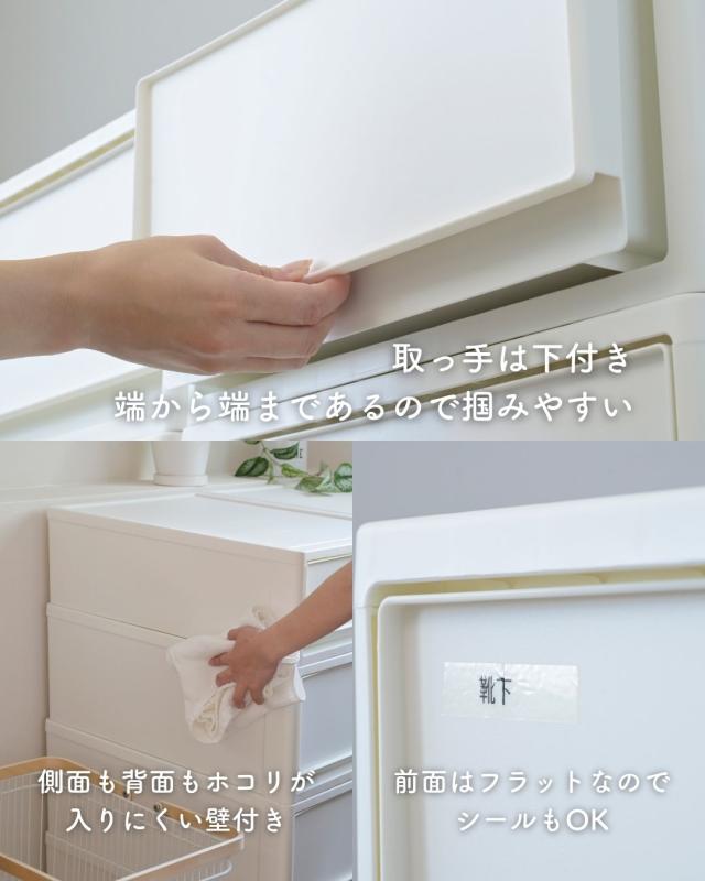 | 商品説明 | ●押入れや奥深いクローゼットををすっきりさせる、中が透けないプラスチックタイプ ●深さはS/M/Lの3種類、組み合わせてすっきり整理収納 ●積み重ねてもずれにくい、天板&底板の凹凸仕様 ●引き出しはストッパー付きで、引き出し過ぎてもズレ落ち防止 ●引っかかりのないスムーズな開閉 ※1段重ねるごとに5mm高さが下がります。3段重ねると全体の高さから-1cmとなります。 【Mサイズ】 ●Tシャツやパンツ、服の収納に最適な深さのMタイプ ●収納目安:シャツ約12枚、セーター約8枚 ●内寸:幅32 奥行69(間口57.2) 深さ16cm ●耐荷重:天板約2kg、引出し3kg、積み重ね使用時合計約10kgまで ※2024年9月5日よりグレージュ色を追加します。 ※個体差により、やや歪みがある場合がございます。 |