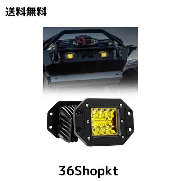 ◆商品名:Chelhead 埋め込みLED作業灯 48w イエロー 5インチ LED ワークライト 12V-24V対応 汎用 車外灯 ジムニー 補助灯 農業機械 2個セット