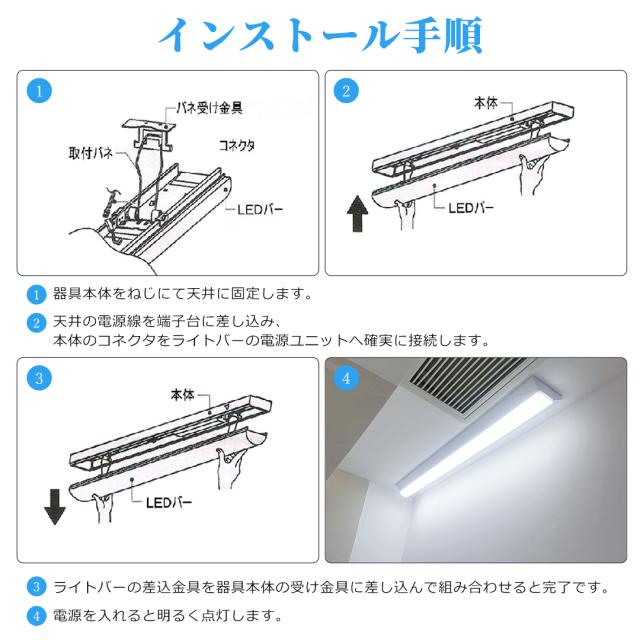 【器具一体構造LED蛍光灯】:電源配線するだけでそのまま使えます。