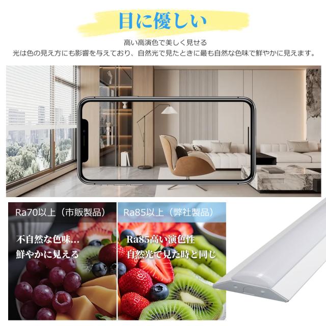 - LEDは発熱量が少ないため、通常の蛍光灯と比較して光の下でも暑くありません。そのため、夏の空調の節約も期待できます。赤外線や紫外線をほとんど含まないため、色あせなども抑えられます。