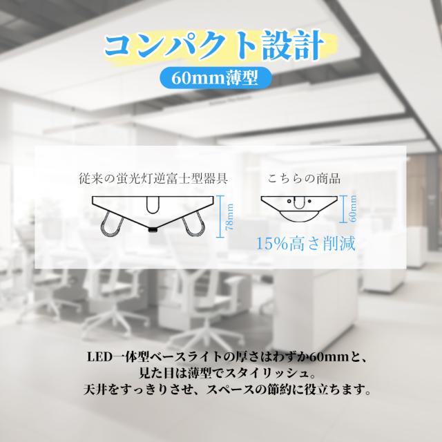 - 逆富士型LEDベースライト「国際ノイズ規格のCISPR15に準拠、病院などノイズ対策必要な場所にもご満足いただけます」 ※イズレス ・無輻射 ・チラツキなし。国際ノイズ規格のCISPR15に準拠。病院・オフィス・学校・製薬会社・食品工場・営業所・工場の完璧な選択肢。