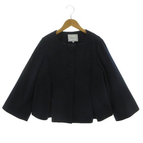 【中古】クチュールブローチ COUTURE BROOCH ジャケット ノーカラー タック Aライン フレアスリーブ 起毛 紺 38