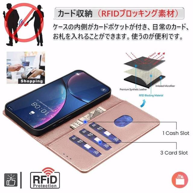 ●財布型ケースとして、名刺やお札などを入れるカードポケットがつき、日常生活に便利です。