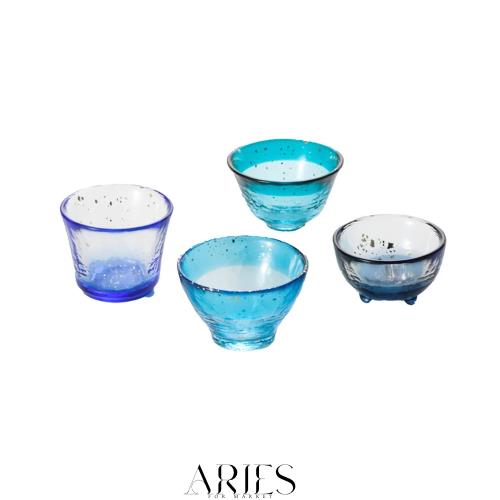 ◆商品名:アデリア(ADERIA) 津軽びいどろ あおもりの海 盃セット 日本製 化粧箱入 おちょこ ぐい呑み 日本酒 グラス ガラス 冷酒 お猪口 酒器 利き