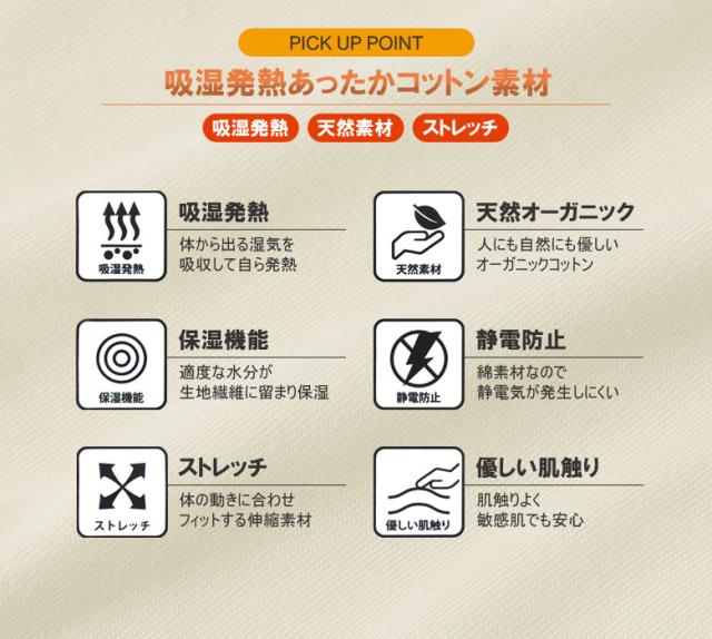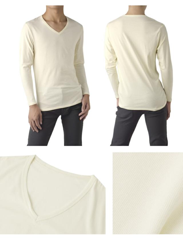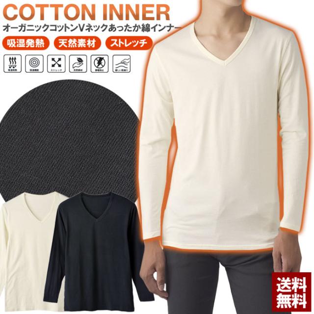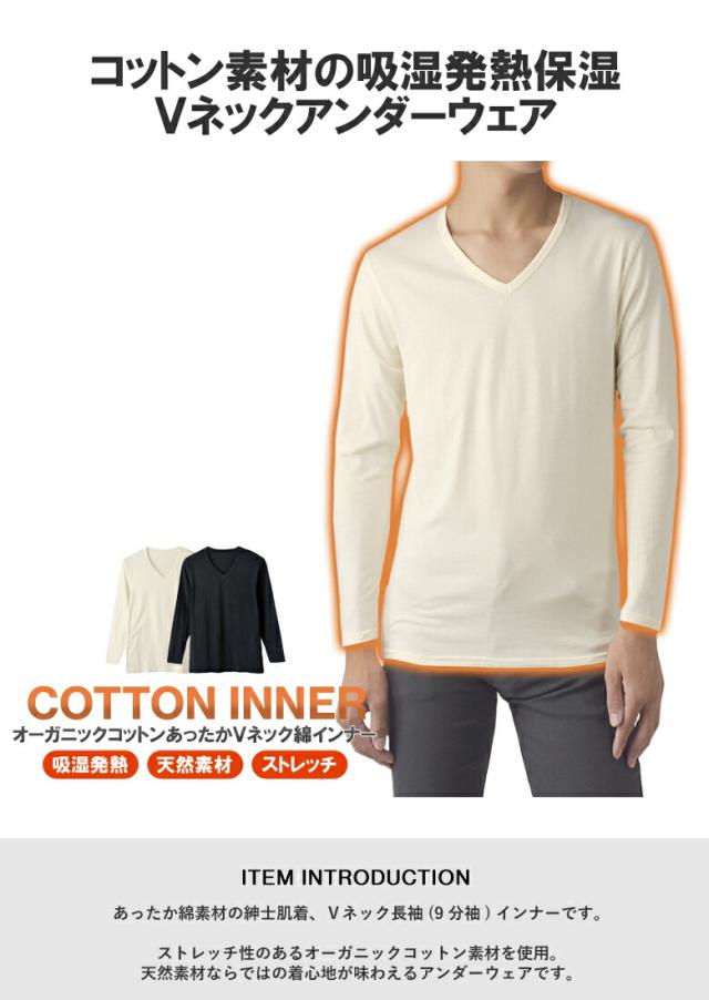 オーガニックコットン あったか 綿インナー メンズ 肌着 Vネック 長袖 9分袖 アンダーウェア Tシャツ 吸湿発熱 オーガニック 保湿 静電防止 ストレッチ 肌ざわり【E3O】【パケ2】