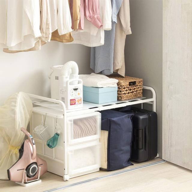 シーズンオフの寝具を収納するだけでなく、棚を上げて下に衣装ケースや収納ボックスを置くこともできます。
