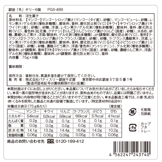 2026 ゼリー スイーツ 贈り物 ギフト Gift パティスリー銀座千疋屋 【冬季限定】銀座「冬」ゼリー6個