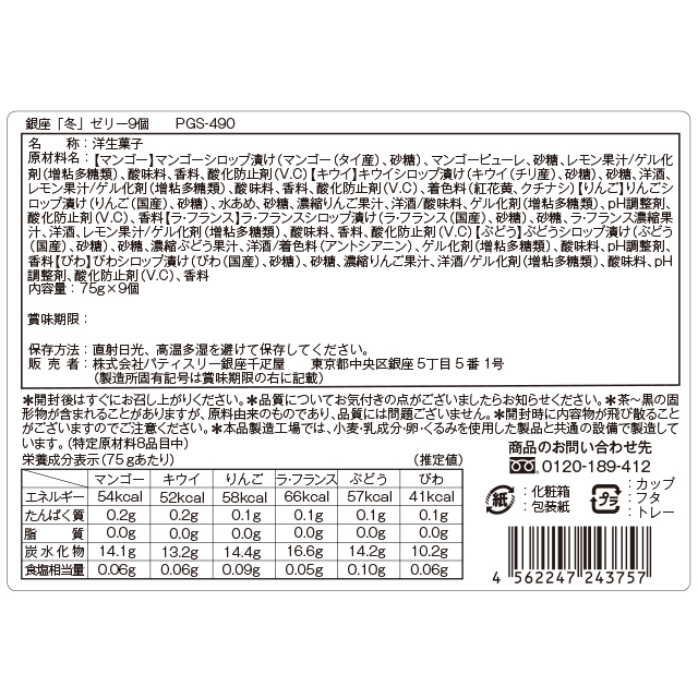 2026 ゼリー スイーツ 贈り物 ギフト Gift パティスリー銀座千疋屋 【冬季限定】銀座「冬」ゼリー9個
