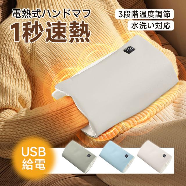 電熱 ハンドウォーマー ハンドマフ モバイルバッテリー給電式 USB コンパクト 折りたためる 3段階温度調節 軽量 秋 冬 PUレザー かわいい ポケット付き 洗える 温熱グッズ 快熱 持ち運び便利 【PL保険加入済み製品・安心】