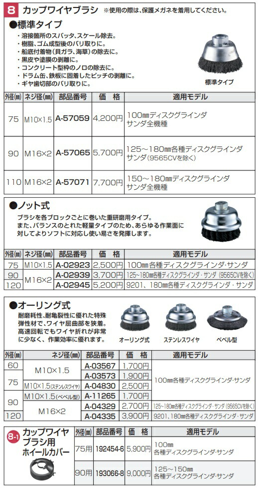 (マキタ) カップワイヤブラシ A-02939 外径90mm ネジ径M16mmx2mm 125〜180mm各種グラインダ(9565CVを除く) makita ●