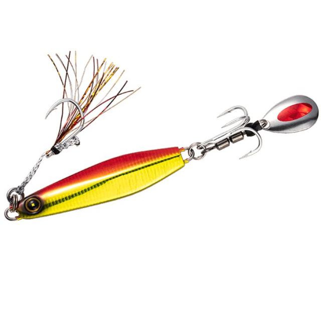 [三太郎の日P10倍!] ハヤブサ (Hayabusa) 釣り フィッシング ルアー ショアジギ ジグ シーバス 青物 ハマチ ブリ スズキ カンタン巻きジグ ジャックアイ マキマキ FS417 ケイムラアカキン 30g