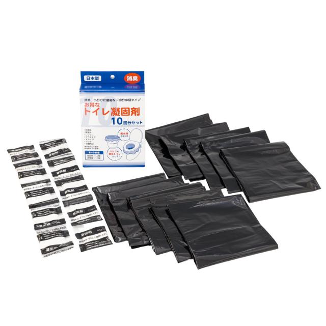 トイレ凝固剤 10回分 セット 凝固剤 10個 汚物袋 10枚 日本製 ( 汚物処理袋 消臭 非常時 トイレ 非常用トイレ 簡易トイレ 介護 断水 防災 キャンプ 使い捨て 簡易 携帯用トイレ 介護用トイレ 災害 緊急用 アウトドア ドライブ )