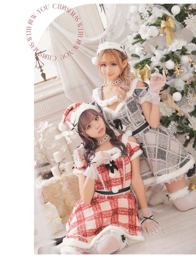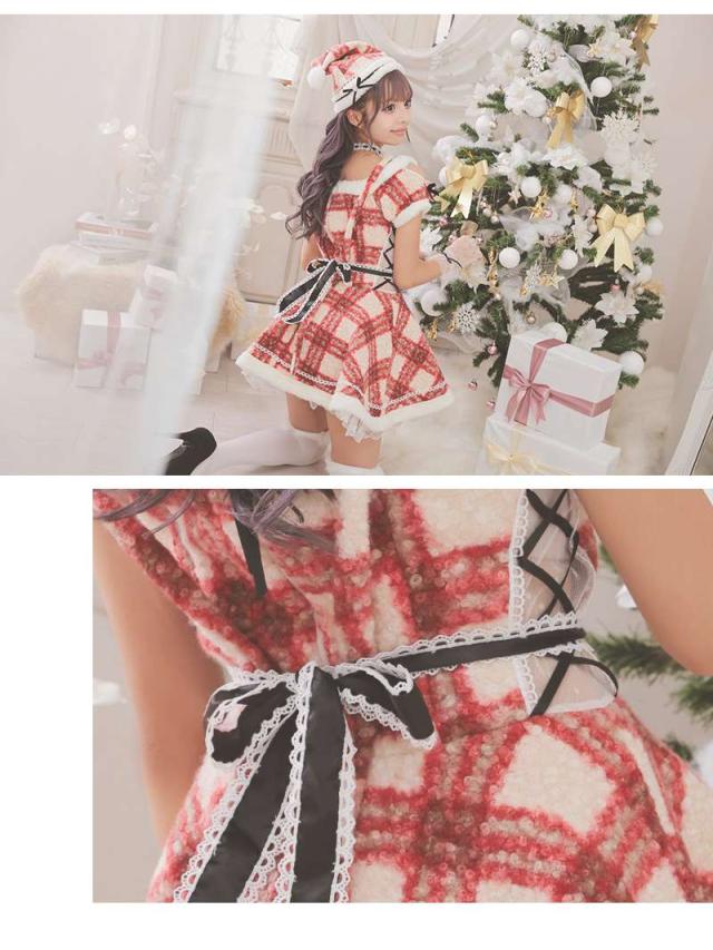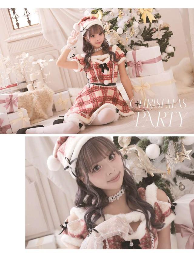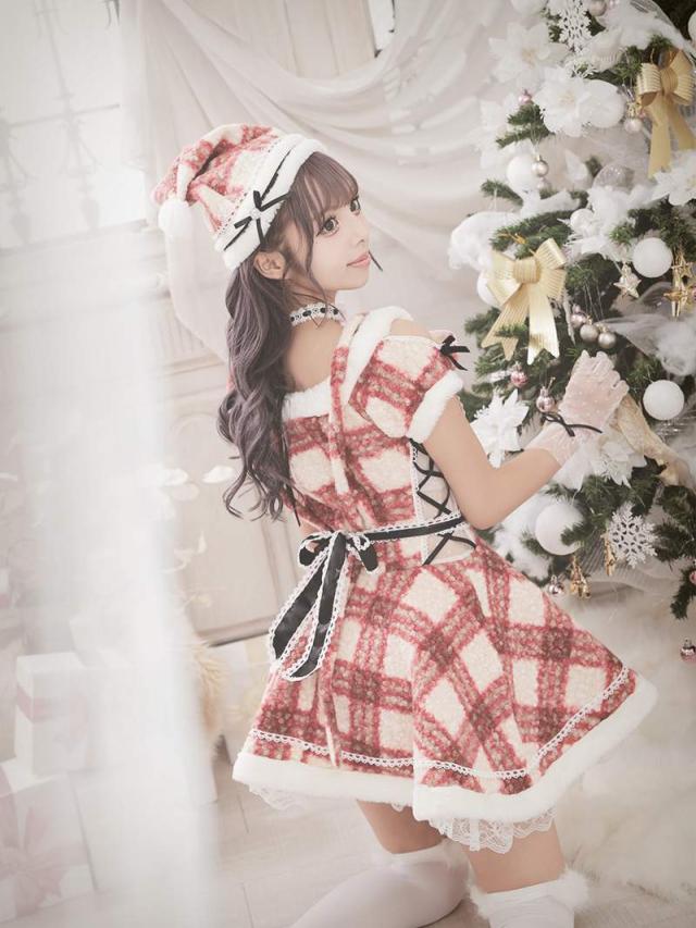 ☆チェック柄が愛らしいドーリーなサンタコスプレ。