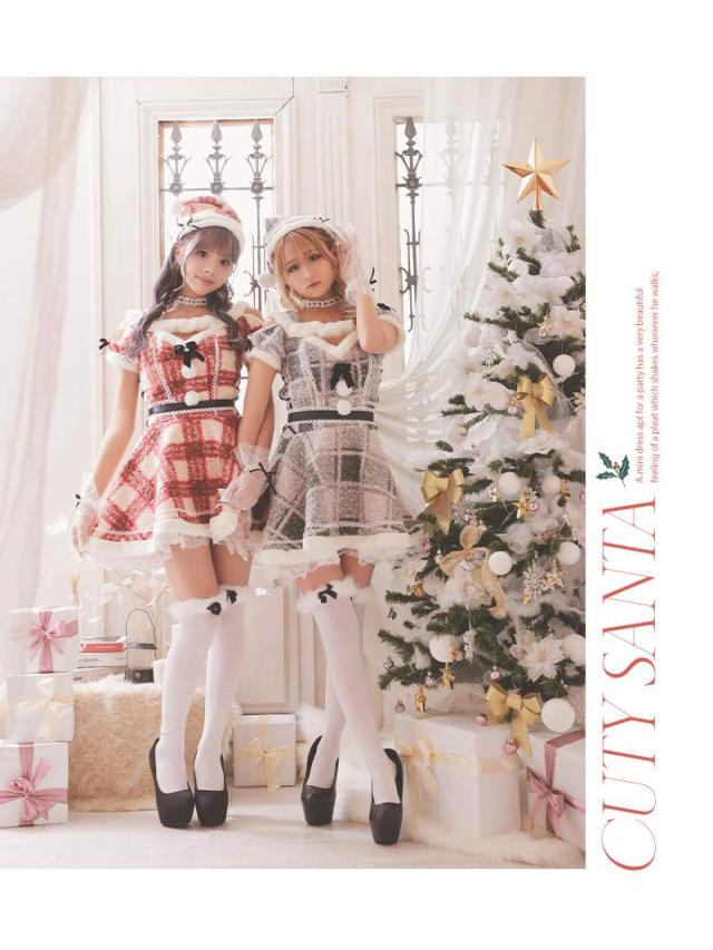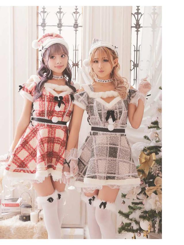 ☆レッドとグレーの2色展開のギャルサンタコスは仲良しとペアで着てもかわいいサンタコスプレ。