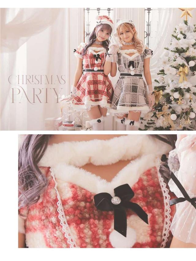 キャバサンタ Ryuyu チェック柄 ドーリー フレア 体型カバー かわいい サンタ コスプレ サンタコスプレ サンタコス ク