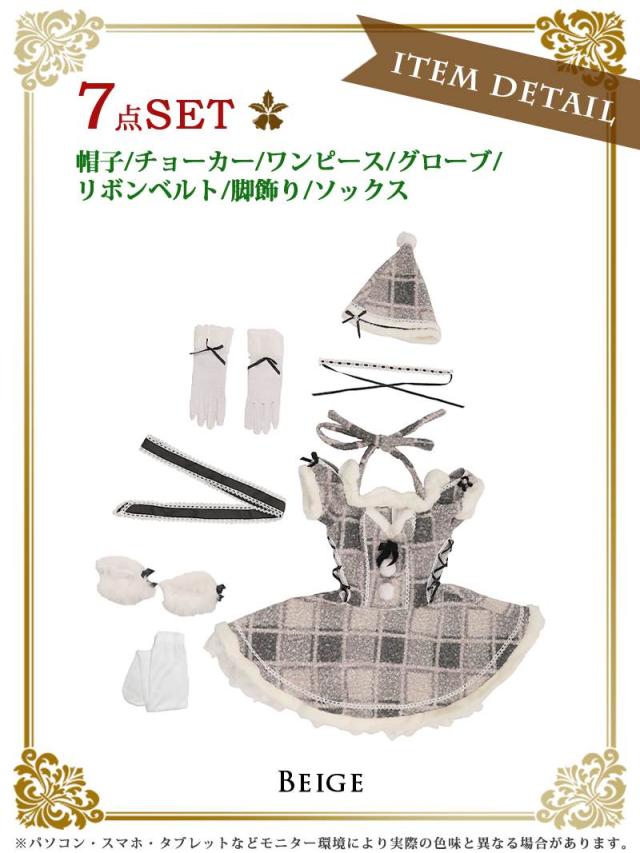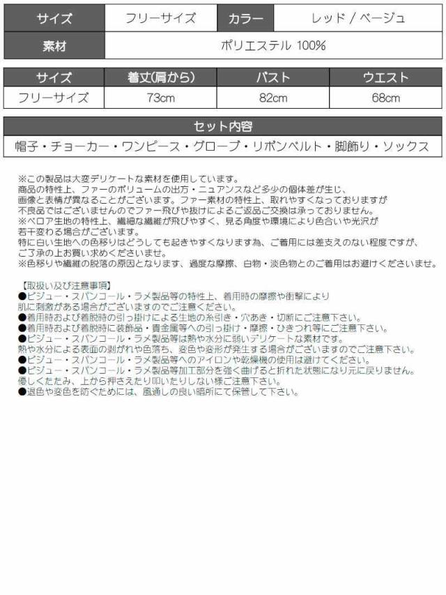 セット内容:帽子・チョーカー・ワンピース・リボンベルト・グローブ・脚飾り・ソックス