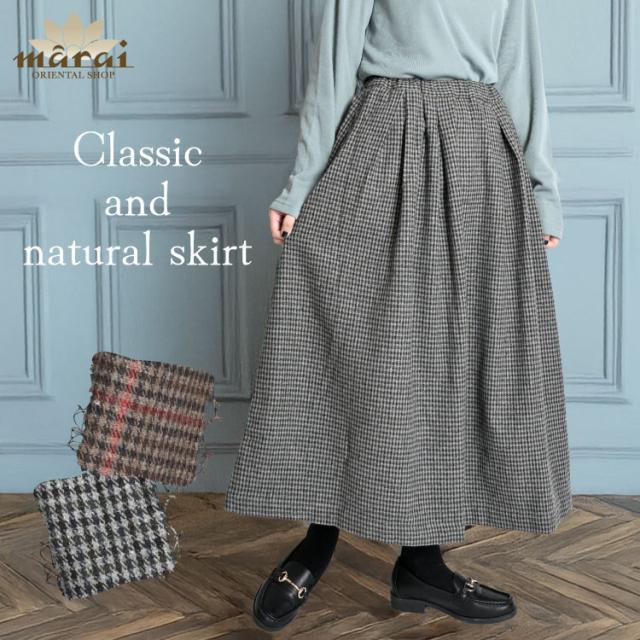 フレアスカート レディース チェック柄 秋冬の雰囲気をまとって。チェック柄スカート rk70165 柄物 ボトムス スカート ロング Aライン 秋 冬 秋冬 体型カバー ゆったり ウエストゴム カジュアル ナチュラル 30代 40代 50代 60代