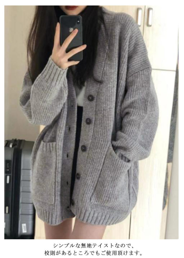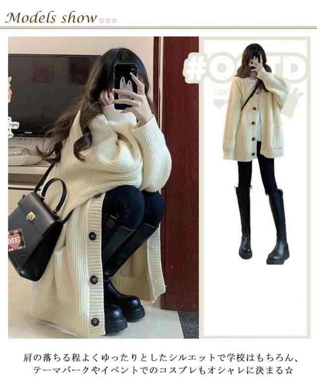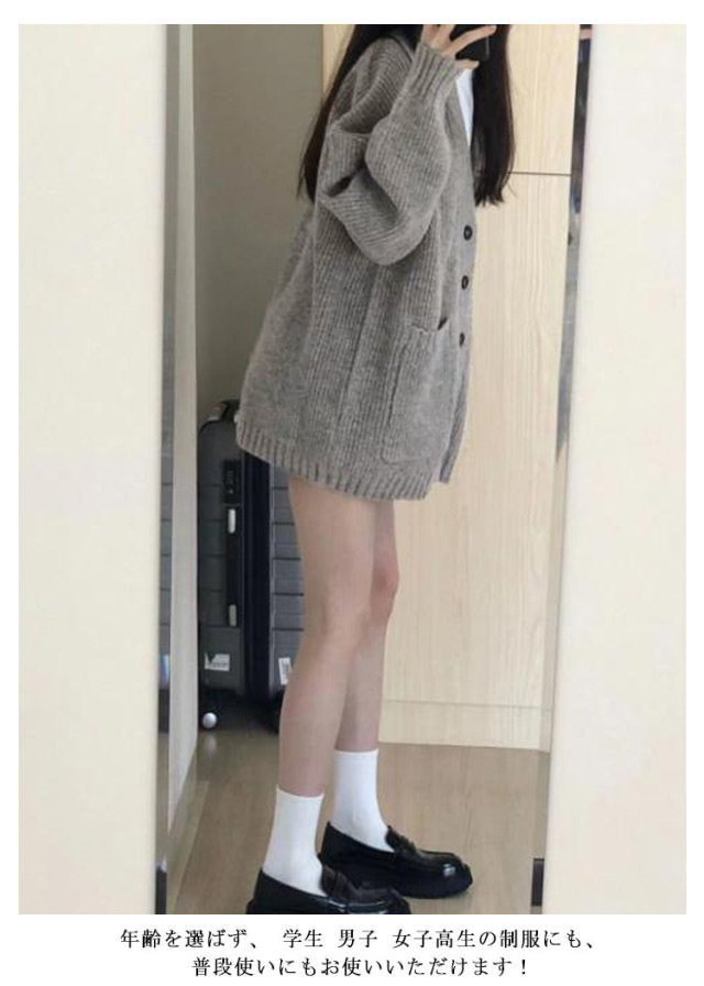 | 通学でも私服でも使えるニットカーディガン 肩の落ちる程よくゆったりとしたシルエットで学校はもちろん、テーマパークやイベントでのコスプレもオシャレに決まる☆ シンプルな無地テイストなので、校則があるところでもご使用頂けます。 程よい厚みのあるニット生地は、ジャケットを上から羽織っても着膨れせず、可愛さKEEP!!! 年齢を選ばず、 学生 男子 女子高生の制服にも、普段使いにもお使いいただけます! | |