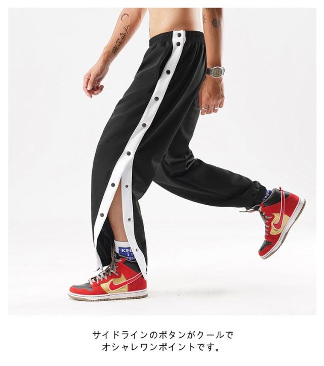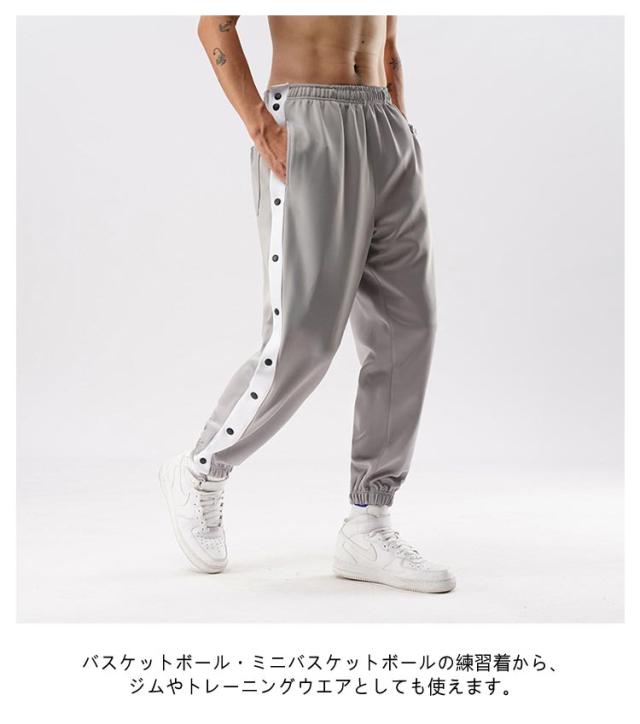 ジュニア バスケットウエア メンズ 長ズボン サイドボタン 裾ボタン バスケットパンツ バスケット スナップボタン ジャージ サイドライン スウェットパンツ ロングパンツ 大きいサイズ スポーツ トレーニングウエア バスケットウエア カジュアル