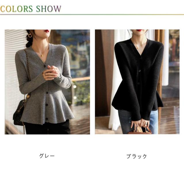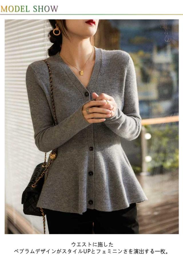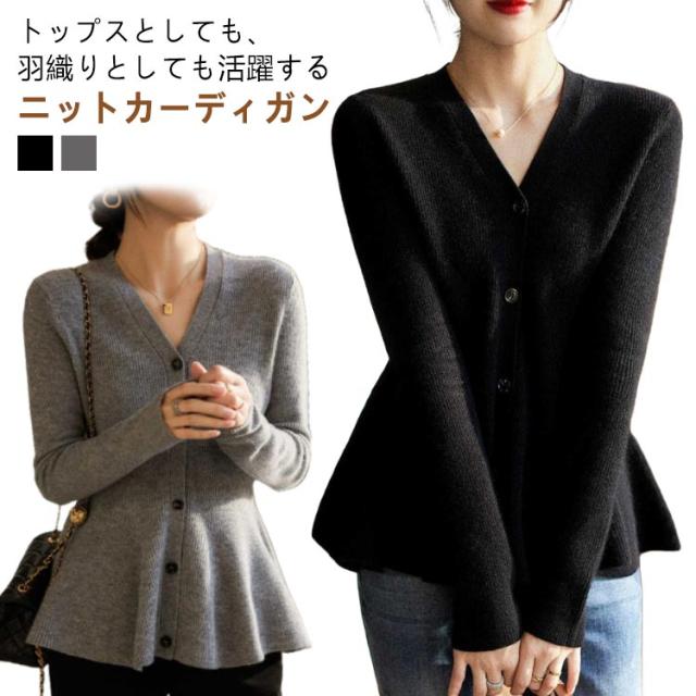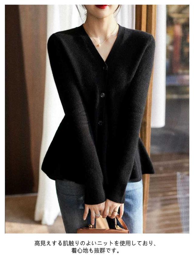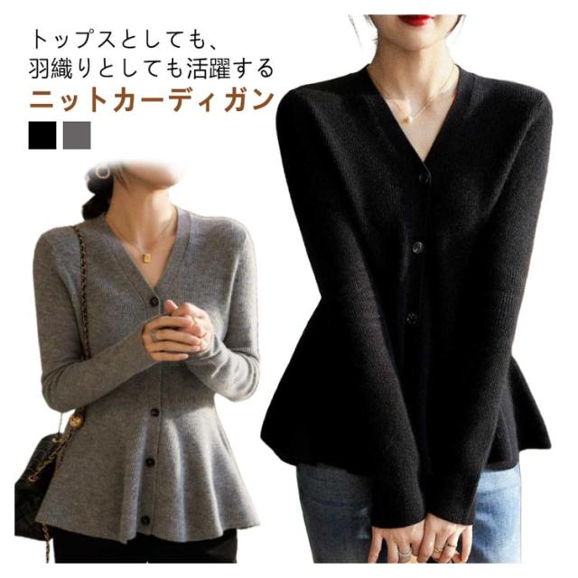 トップス カーディガン ニットカーディガン ニット 前開き レディース トップス Vネック ペプラム キレイめ 長袖 プルオーバー フレアシルエッ フィット 羽織り フェミニン 春秋 お洒落 通勤 通学