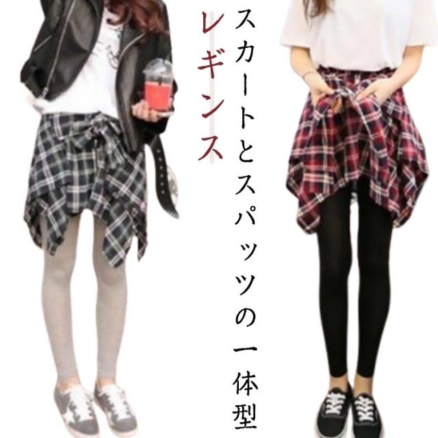 レギンス マタニティ 腰巻 レディース スカート付きレギンス チェック柄 格子柄 レギンススカート 秋 冬 スカートレギンス スカート付きレギンス 春夏 スカート タイトスカートレギパン 韓国 レギンスパンツ 重ね着風 秋冬 ミモレ丈