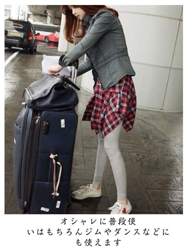 | スカートとスパッツの一体型レギンス シャツ風のスカートを腰に巻いて着痩せ効果抜群! ウエストはゴムだから楽ちんです♪ オシャレに普段使いはもちろんジムやダンスなどにも使えます | |