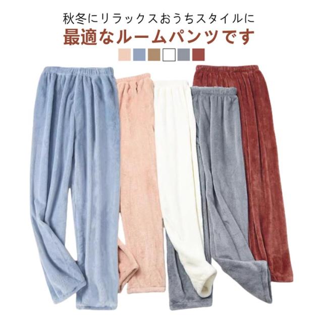 メンズ 暖かい ルームウエア レディース リラックスパンツ フリース モコモコ パジャマ 秋冬 ゆったり 部屋着 ルームパンツ 防寒 厚手 ストレート 保温 ウエストゴム 無地 ボトムス 男女兼用 ルームパンツ お洒落