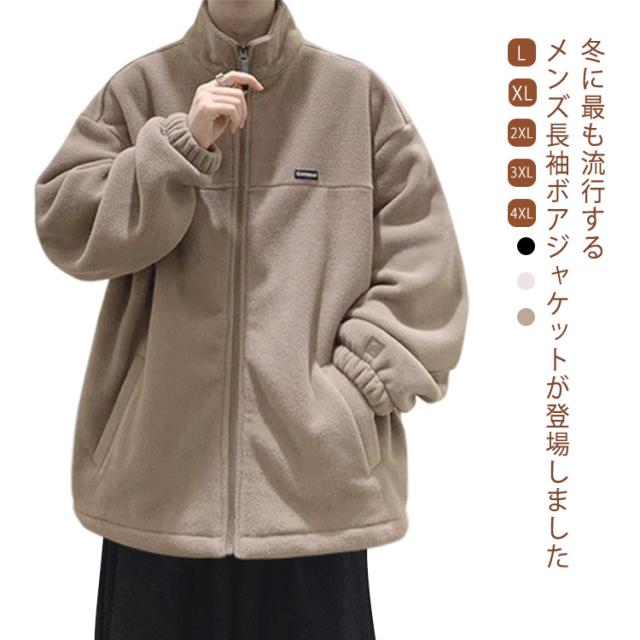 ボアジャケット メンズ ボアコート 冬 裏起毛 フリースジャケット もこもこ あったか アウター 防寒 保温 裏起毛 厚手 暖かい ゆったり 大きいサイズ カジュアル アウトドア 部屋着