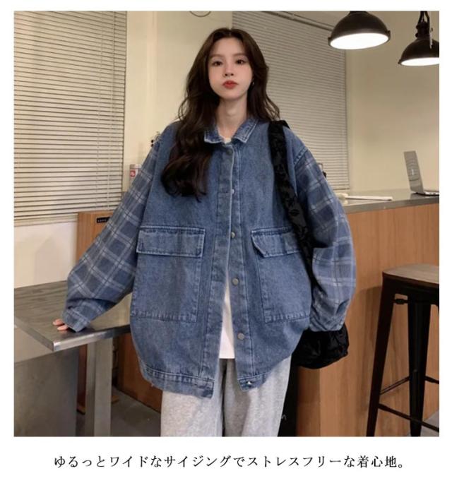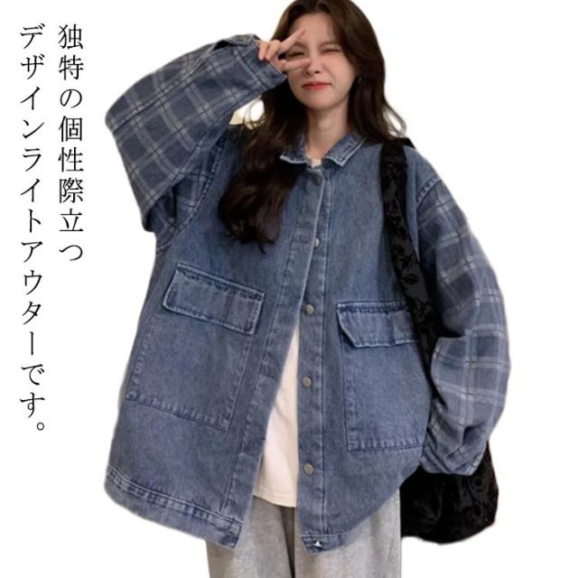 ジージャン コート ジャケット 羽織り 配色 切り替え 重ね着風 モード系 春秋着 レディース ライトアウター シャツジャケット ジュニア トップス カジュアル デニム 男女兼用 アウター 秋 お洒落 部屋着 オーバーサイズ 旅行 長袖 通園 通学 旅行