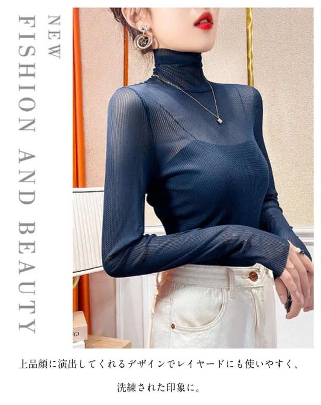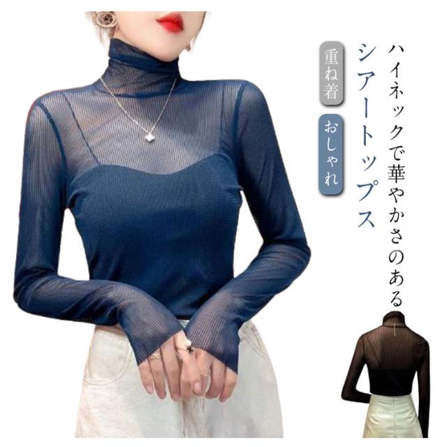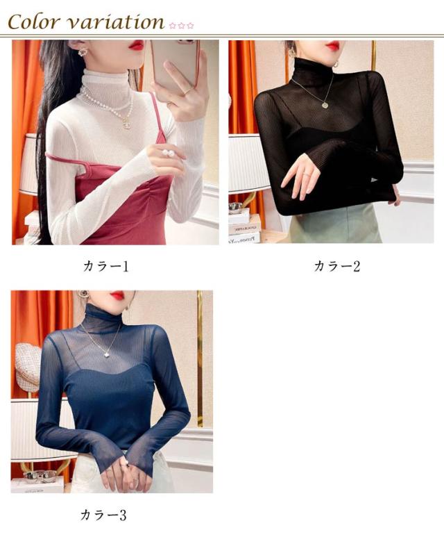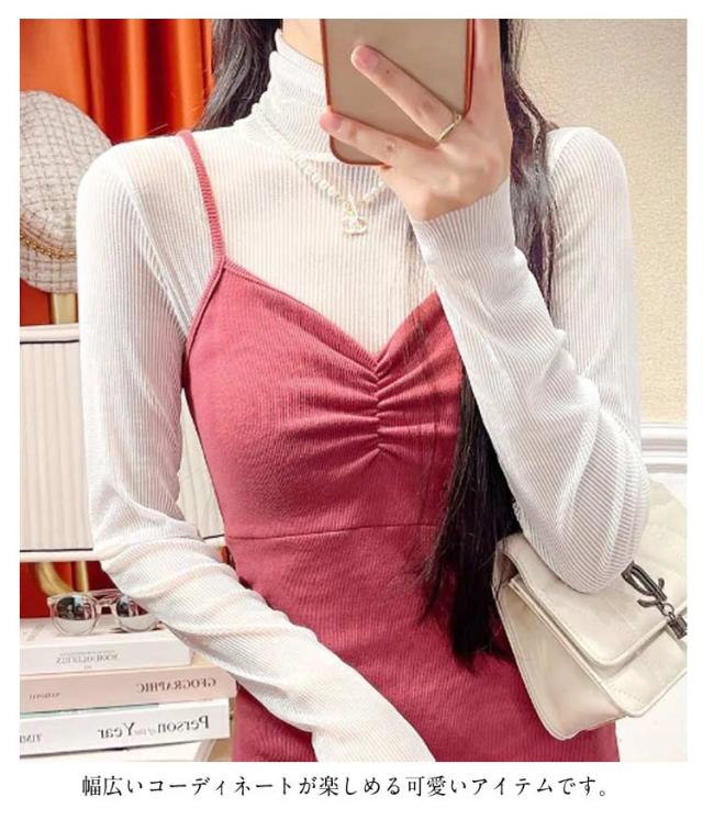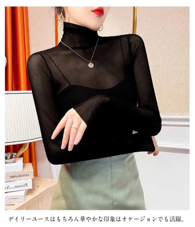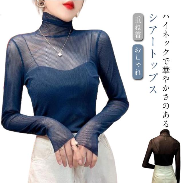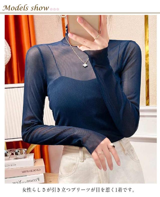 重ね着 シースルー タートル インナー 肌着 シアートップス レディース トップス チュールトップス おしゃれ レイヤードトップス 下着 プリーツ きれいめ プリーツ 長袖 春 夏 S M L XL
