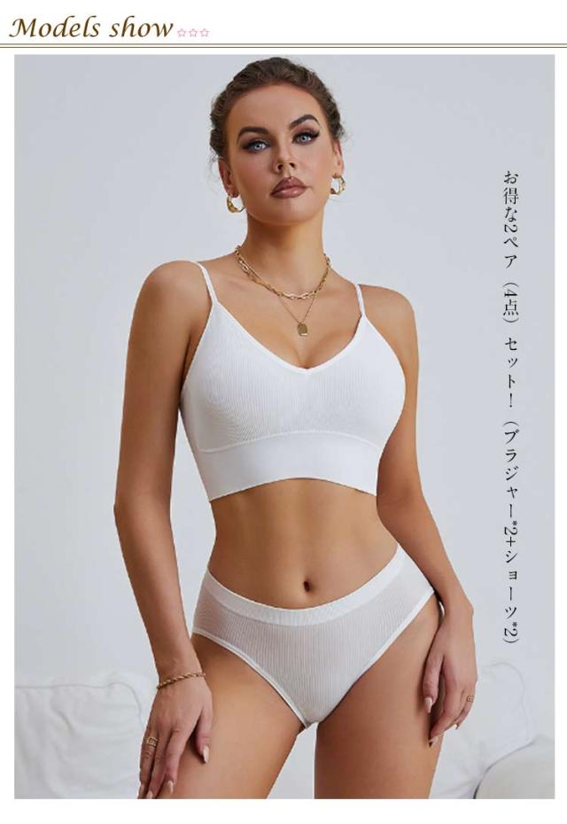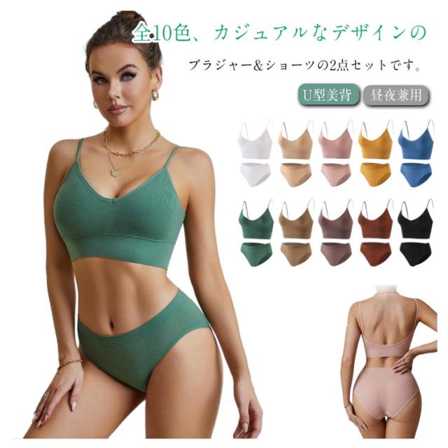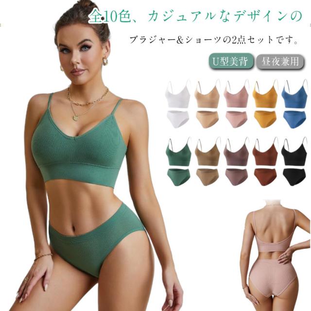 ナイトブラ ノンワイヤー 育乳ブラ シンプル リラックスブラ ノンワイヤーブラ ショーツ 上下セット 昼夜兼用 U型美背 脇高 ブラジャー ショーツ セット 2組 ブラジャー ストレッチ ブラ おしゃれ カジュアル かわいい