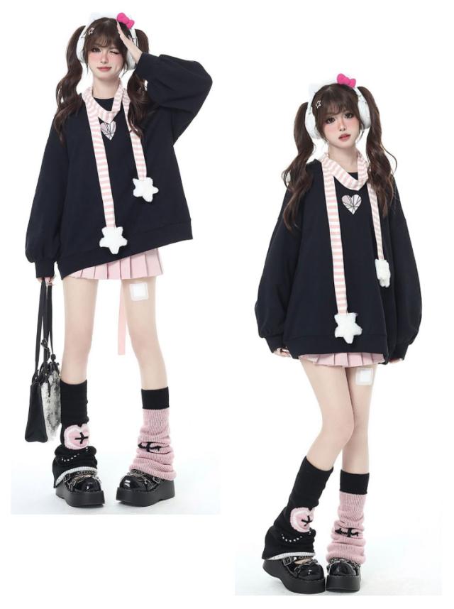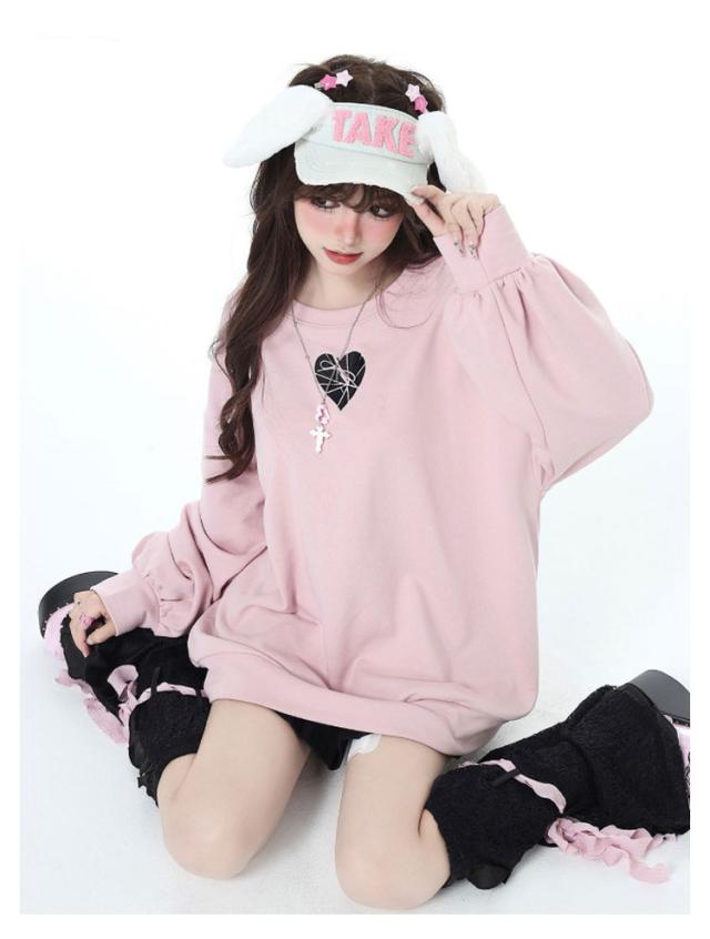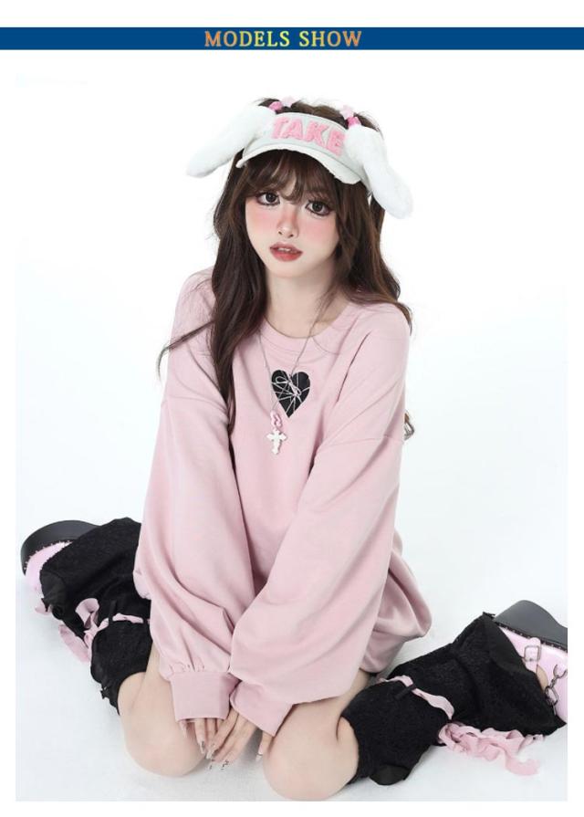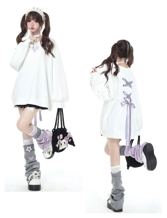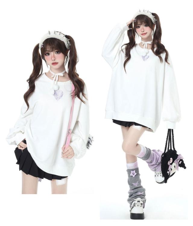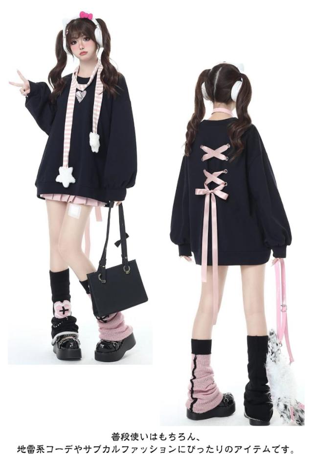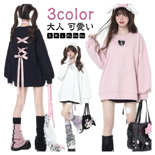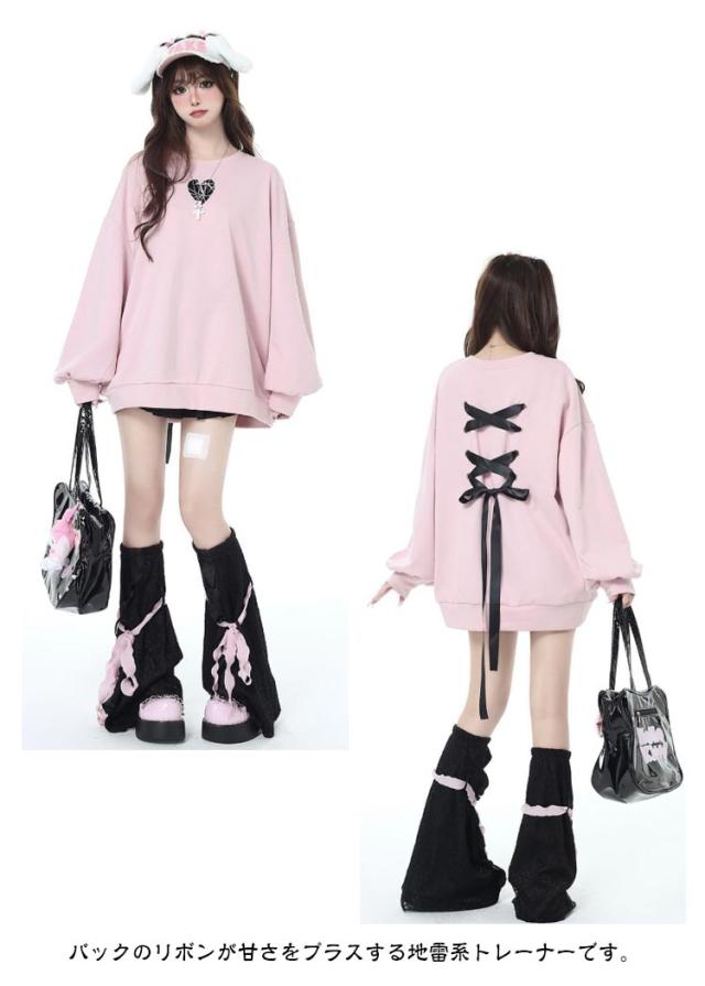 トレーナー ファッション パーカー バックリボン ロリータ 長袖 プルオーバー ビッグシルエット 原宿系 オーバーサイズ 地雷系 冬 ハート 大きめ 秋 トレーナー 春 大きいサイズ ダンス 衣装 パンク 病みかわいい 量産型