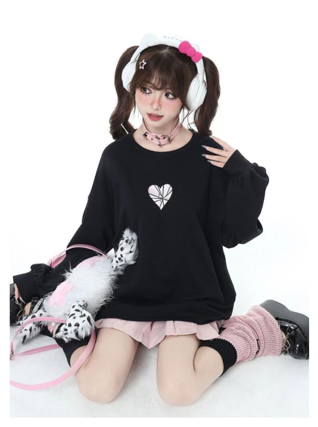 | 【S〜3XL】【3color】 バックのリボンが甘さをプラスする地雷系トレーナーです。 フロントのハートデザインがキュートで、主張しすぎないさりげないポイントです。 普段使いはもちろん、地雷系コーデやサブカルファッションにぴったりのアイテムです。 | |