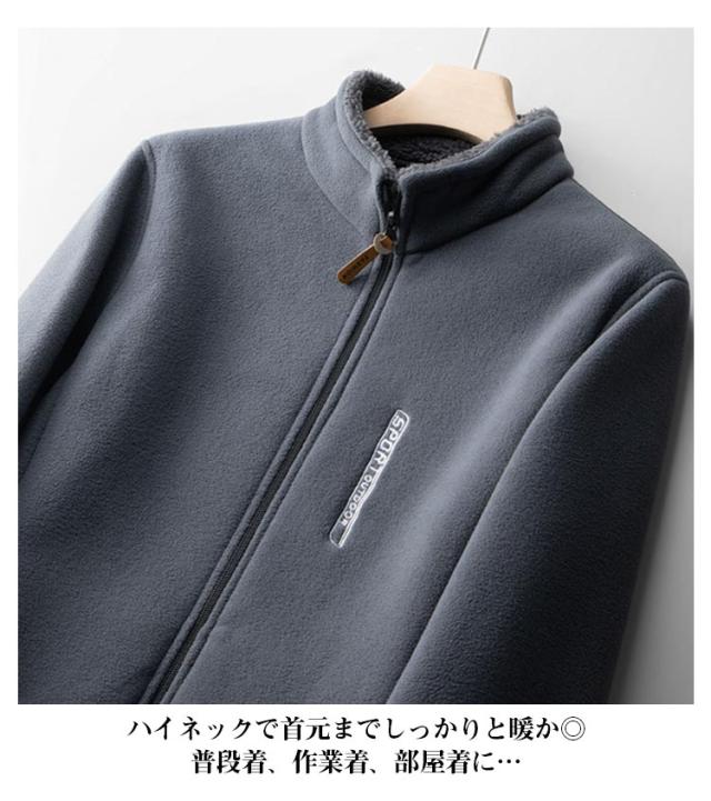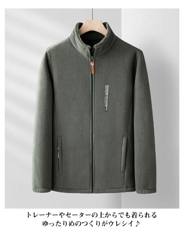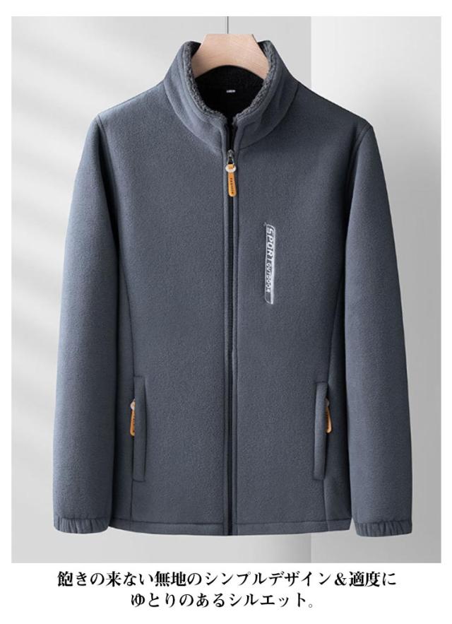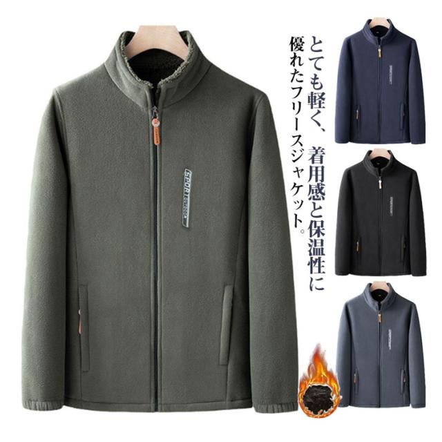 ジャケット メンズ 厚手 冬用 裏起毛 スタンドカラー フリースジャケット 無地 2重フリース 厚い 秋冬用 ジャンパー 防寒 ジャンバー フリースブルゾン アウター カジュアル 送料無料 部屋着 ルームウェア ワンマイルウェア ラウンジウェア