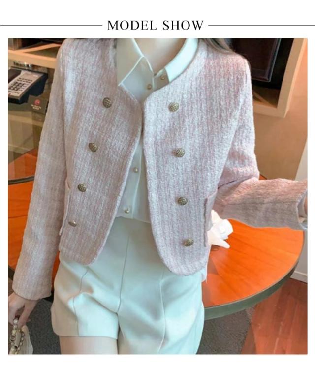 ツイードジャケット ノーカラージャケット ツイード ジャケット 上品 レディース ツイードジャケット カラーレス 羽織り ゴールドボタン ポケット付き 長袖ジャケット フォーマル オフィス カジュアル ビジネス ママスーツ アウター 大人 送料無料 ホワイト