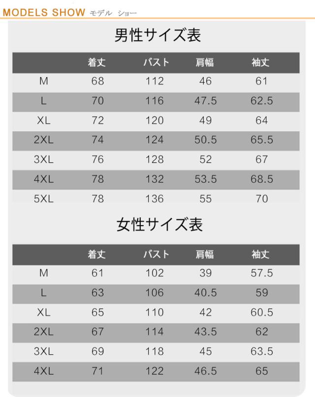 | サイズについての説明 | 女性サイズは M-4XLまで です。 ※サイズ表の実寸法は商品によって1-3cm程度の誤差がある場合がございます。 |
