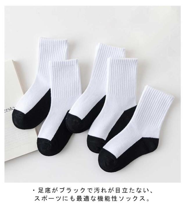 キッズ ソックス 足底ブラック 足底グレー 5足セット スクールソックス 足裏 汚れが目立たない 靴下 綿 コットン クルー丈 底黒タイプ 黒底ソックス 女の子 男の子 ジュニア 子供 野球 通園 通学 春 秋 冬
