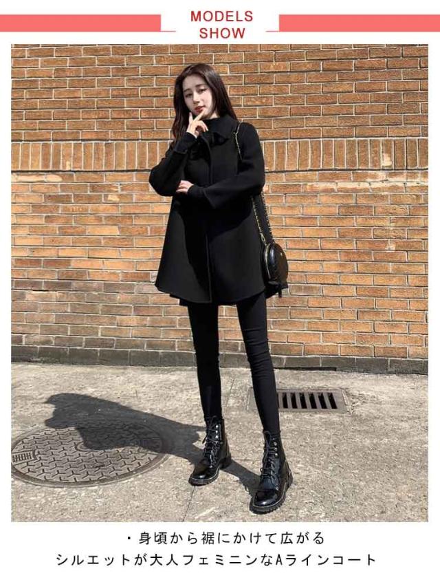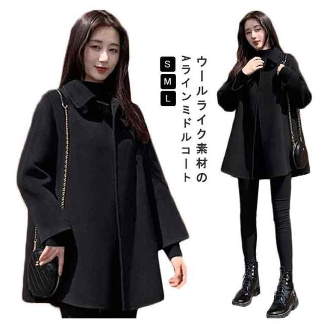ウールコート Pコート ダブルフェイス ウール レディース Aライン フレア コート アウター ピーコート ミドル丈 体型カバー ショートコート 防寒 あったか 可愛い きれいめ オフィス 通勤 大人かわいい カジュアル 通学