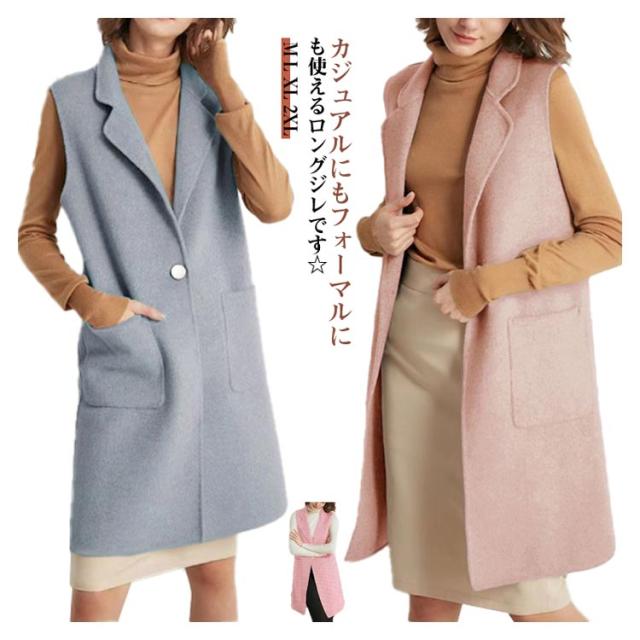 ノーカラー ジレベスト ジレ ベスト ロングジレ ロングベスト トップス ジャケット アウター レディース トレンチベスト ロング丈スーツベスト ノーカラー アウター ポケット付き 無地 羽織り 重ね着 レイヤード 大きいサイズ 春 秋 冬 20代 30代 40代 50代 送料無料