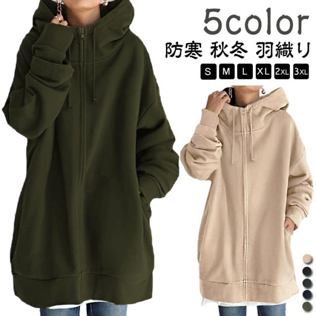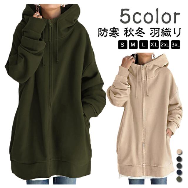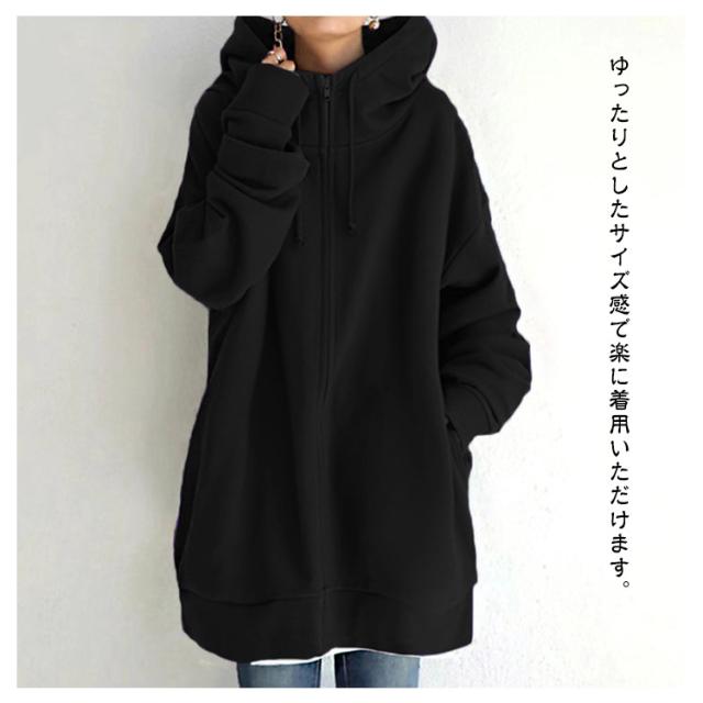 ジップパーカー ジップパーカー ロング丈 ボリュームネック 裏起毛 パーカー スウェット レディース 長袖 ロングパーカー フード付き 体型カバー 無地 トップス 着痩せ あったか おしゃれ ゆったり 大きいサイズ 防寒 秋冬