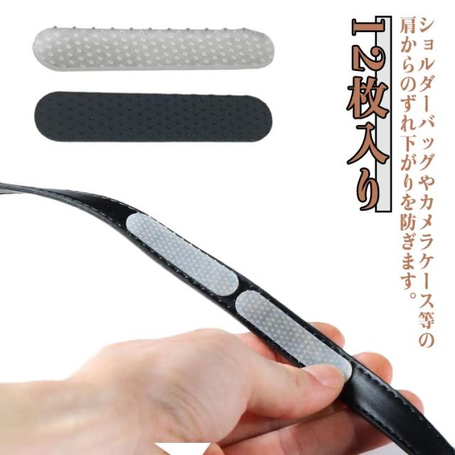 シリコン ベルトストップ ストップ 滑り止め 粘着タイプ ベルトストッパーズレ落ち防止 PC ストップ パソコン 【12枚入り】ベルト 肩ベルト ショルダー紐 ショルダーバッグ すべり止め 肩ずれに 貼りつけ 肩掛け 送料無料 黒