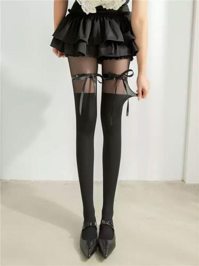 【2足セット】送料無料 レース タイツ 白 ロリィタ リボン タイツ 靴下 ストッキング 細見え ギフト バレンタイン 成人式 パーティー ストッキング セクシー OL ソックス コスプレ プレゼント カラータイツ
