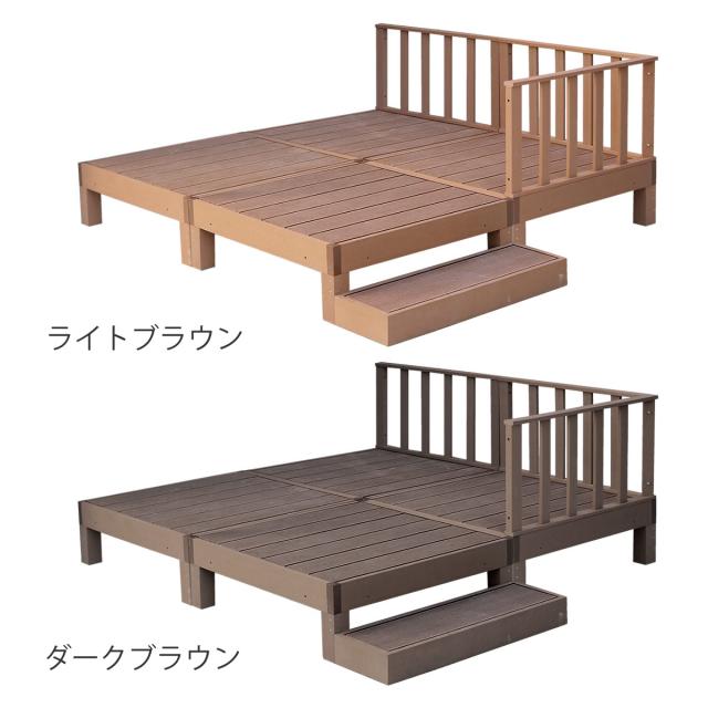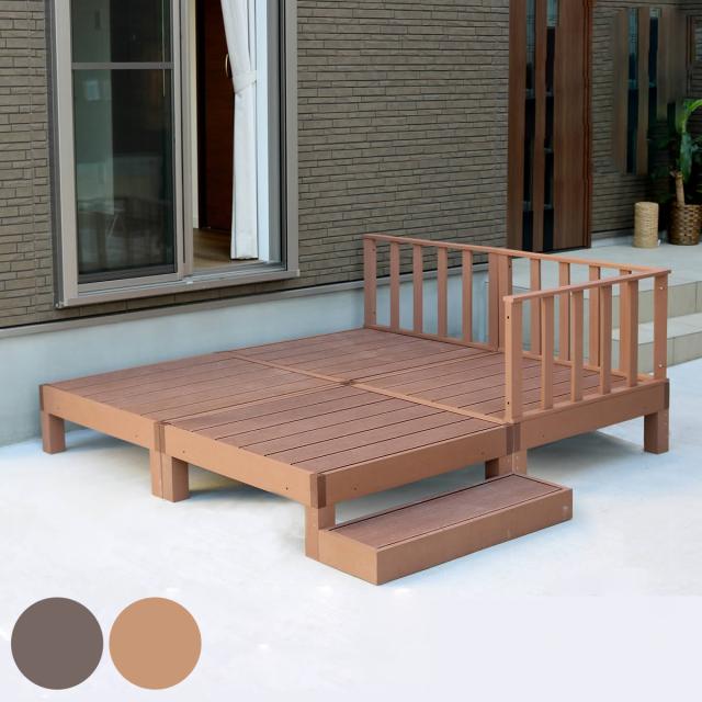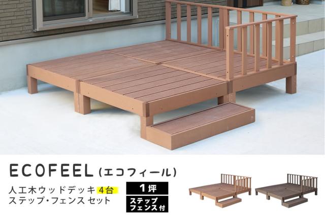 人工木ウッドデッキ ecofeel エコフィール 4台 ステップ・フェンスセット 1坪 ( ガーデンデッキ 人工木デッキ 人工木 DIY 縁台 ぬれ縁 90×90cm セット 掃き出し窓 連結 人工木材 バルコニー 庭 エクステリア 外構 簡単 )