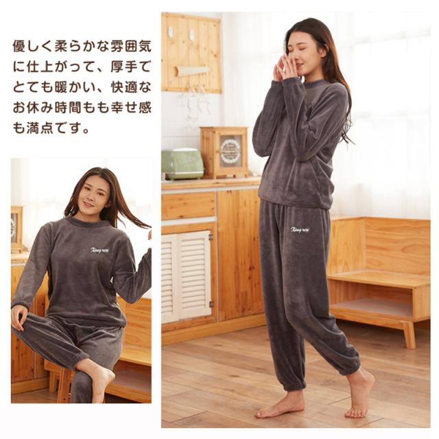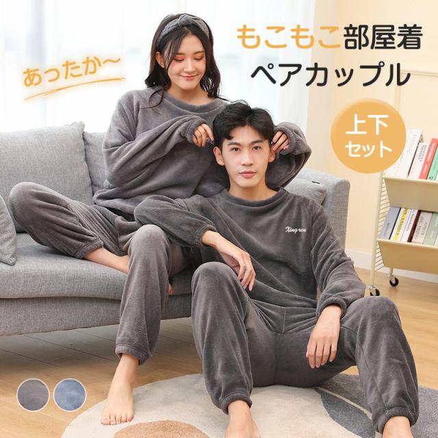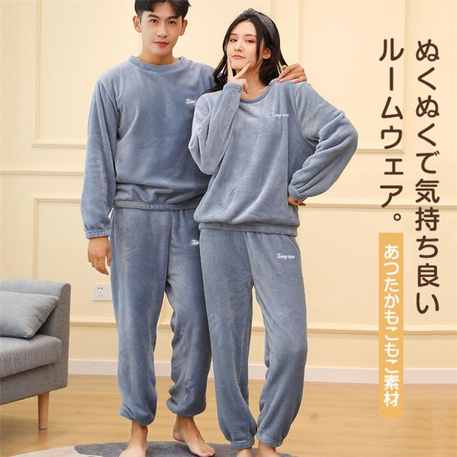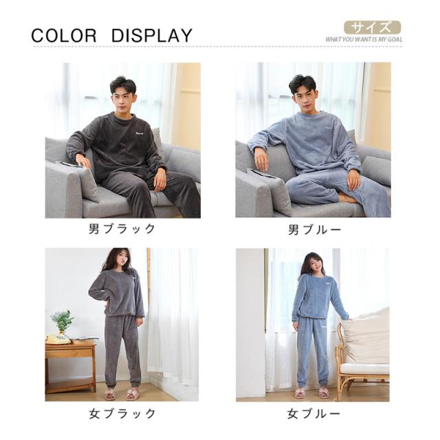 パジャマ ルームウェア メンズ レディース ふわふわ 上下セット 長袖 長ズボン 厚手 ペア 部屋着 もこもこ 防寒 暖かい 春秋