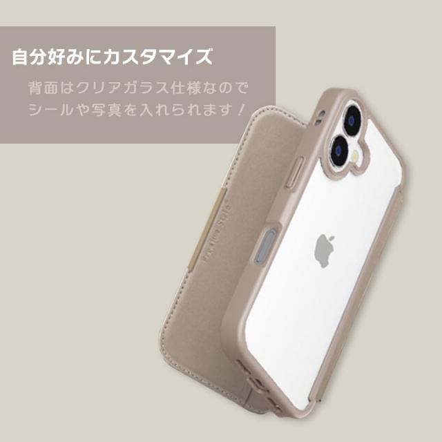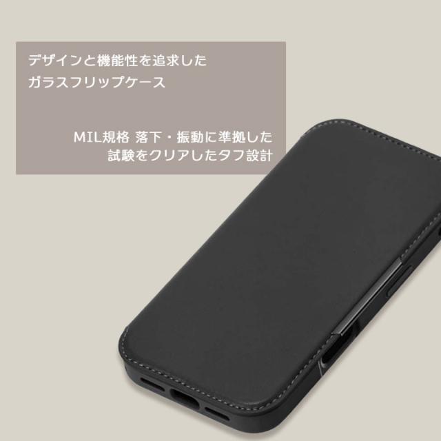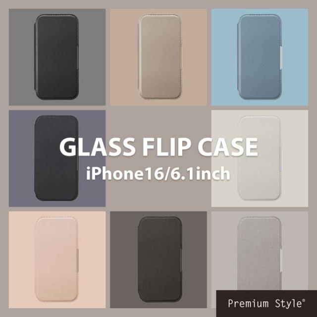 iPhone16用 ガラスフリップケース 手帳型ケース 背面クリア PUレザー カードポケット ブラック ベージュ ブルー ピンク グレー ナイロンメッシュ調 サフィアーノ調 キャンバス メール便送料無料