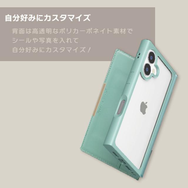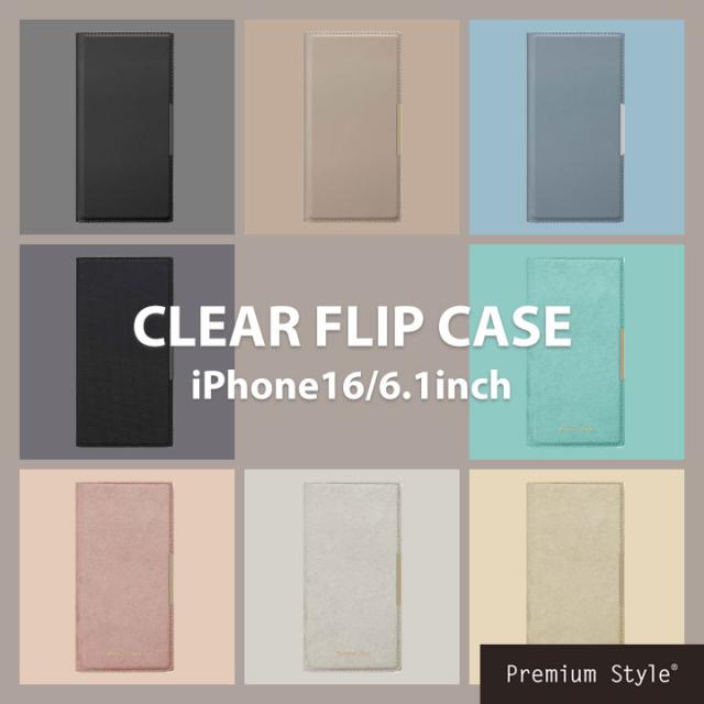 iPhone16用 クリアフリップケース 手帳型ケース 背面クリア PUレザー カードポケット ブラック ベージュ ブルー ピンク グレー ターコイズ ナイロンメッシュ調 スエード調 メール便送料無料