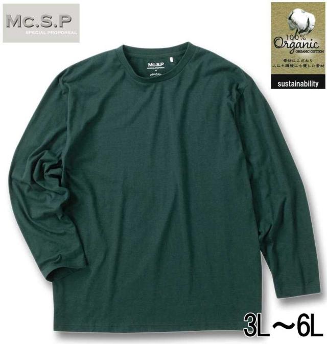 大きいサイズ Mc.S.P オーガニックコットン クルーネック 長袖 Tシャツ ダークグリーン 3L 4L 5L 6L/1278-4370-3-35