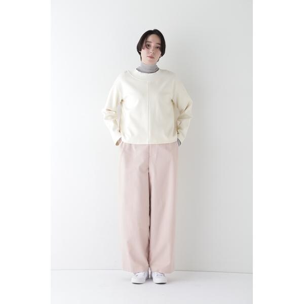履き心地に安心感がありながらも、裾に向かって程よくカーブを描くニュアンスあるシルエットのセミワイドパンツです。三本ステッチや大き目のパッチポケットなどカジュアルなディテールもポイントです。