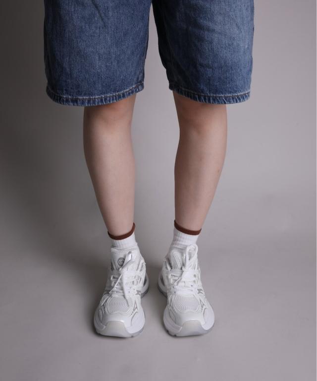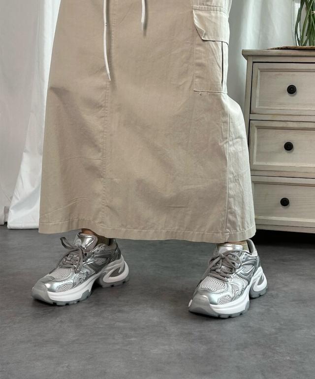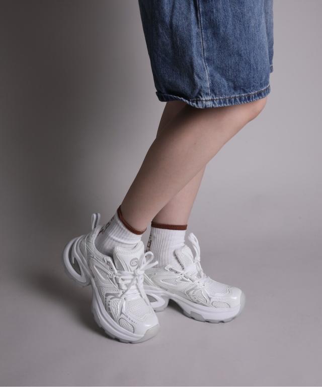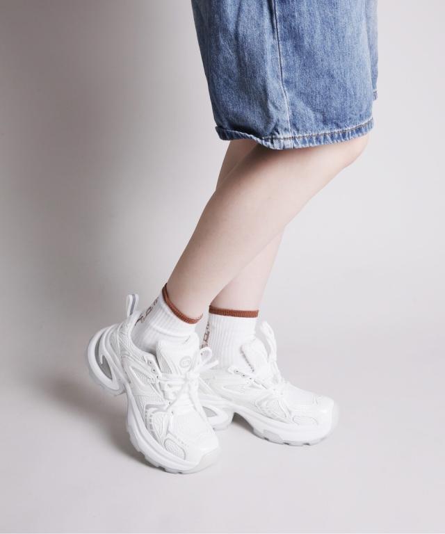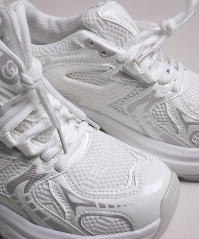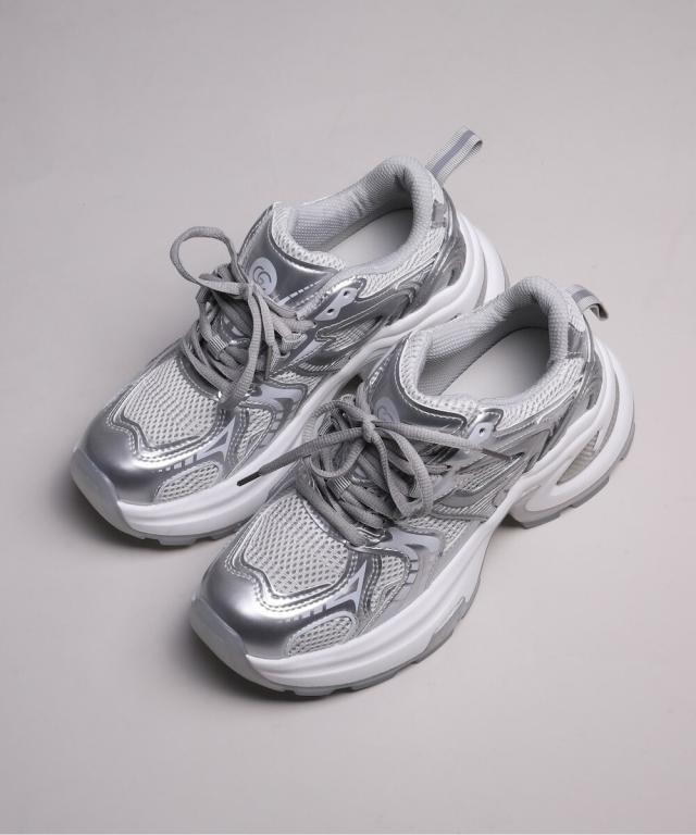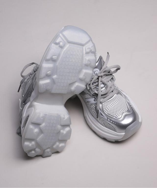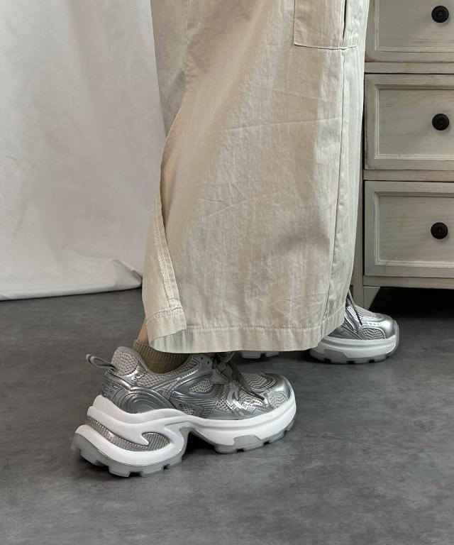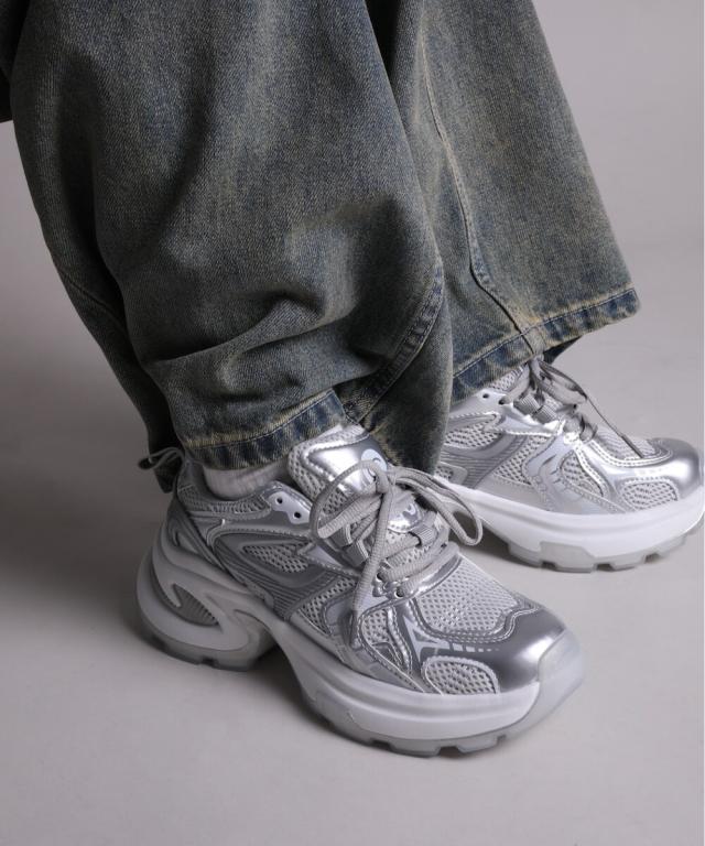 モダンでスタイリッシュなデザインが特徴です。メッシュと合成素材の組み合わせが、軽やかでスタイリッシュな印象を与えます。6.3センチのエアクッションの厚底デザインで脚長効果アップ。白と銀色の2色展開。クリーンなラインとディテールにこだわったデザインが、どんなコーディネートにも合わせやすいです。